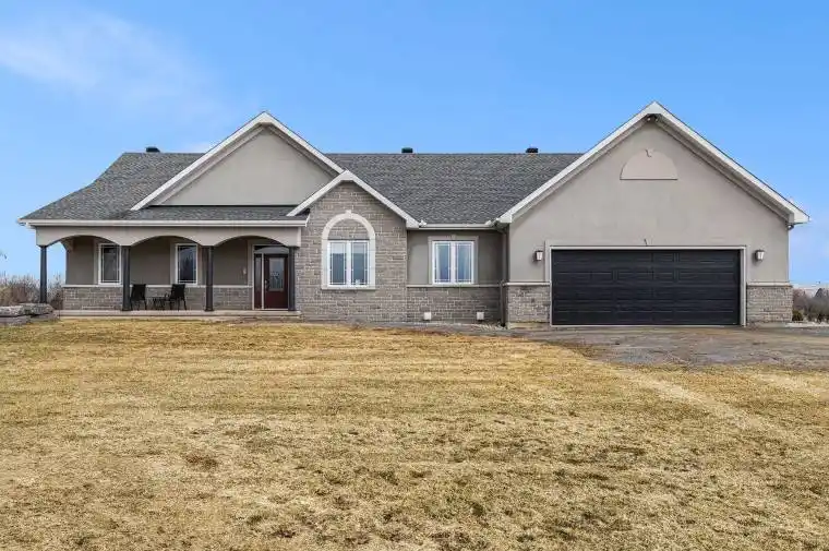 Welcome to this beautiful 5-bedroom bungalow situated on 16 acres, offering the perfect blend of privacy, comfort, and practicality. This spacious home features an open-concept layout that seamlessly connects the living, dining, and kitchen areas, making it ideal for both everyday living and entertaining. As you walk in the front door, you are immediately greeted by the sunlit foyer, which leads to the family room room with fireplace and vaulted ceilings, the dining area and open-concept kitchen with extensive cabinetry, ample counter space and kitchen island with seating capacity. Adjacent to the kitchen is an large mudroom with laundry area that leads to the garage. The main level also features a spacious primary bedroom with two walk-in closets, 5-piece washroom with dual vanity, and three additional bedrooms and a 4-piece washroom. The lower-level is equipped with radiant in-floor heating for year-round comfort and it has a home theatre projector and screen, wired for surround sound. With 9ft ceilings, there is ample space for a variety of uses whether its a golf simulator haven, basement hockey rink, home gym, or a cozy recreation area.The home is fully wheelchair accessible, ensuring ease of movement throughout the entire space. For those who need room for vehicles, hobbies, or business, this property includes not one, but two garages. The large attached garage (26’11” x 43’10ft) provides ample space for four vehicles, tools, and storage. In addition, the separate commercial garage measuring approximately 28ft by 36ft, offers a fantastic opportunity for business owners or anyone needing extra workspace for projects or equipment. Whether you’re entertaining guests or enjoying peaceful family nights, this backyard is designed for relaxation and fun, with the pool, fire pit, interlock patio with ample room for hosting barbecue parties. Furnace- 2022; AC- 2023; 80 Gallon Hot Water Tank – 2022; Rebuilt Water Softener – 2023; Microwave and Dishwasher – 2024.