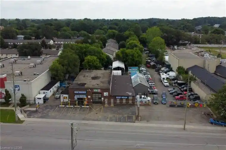 Desirable location! East London with growing residential and commercial activity nearby. Great roadside easy access with huge road frontage ( lots of daily traffic ) ( main road visibility ) Near all necessary amenities like bus route , shopping , and many other businesses. Long term usage as automotive repair and sales since 1960s ( many suppliers and auto wreckers very near )Zoning for auto sales and repair amongst many other uses. Easy access to 401 (5 minutes). Large secure fenced compound. Option for $250,000. down and lease all buildings, car lots, hoists, and loaner cars for $25,000./month.