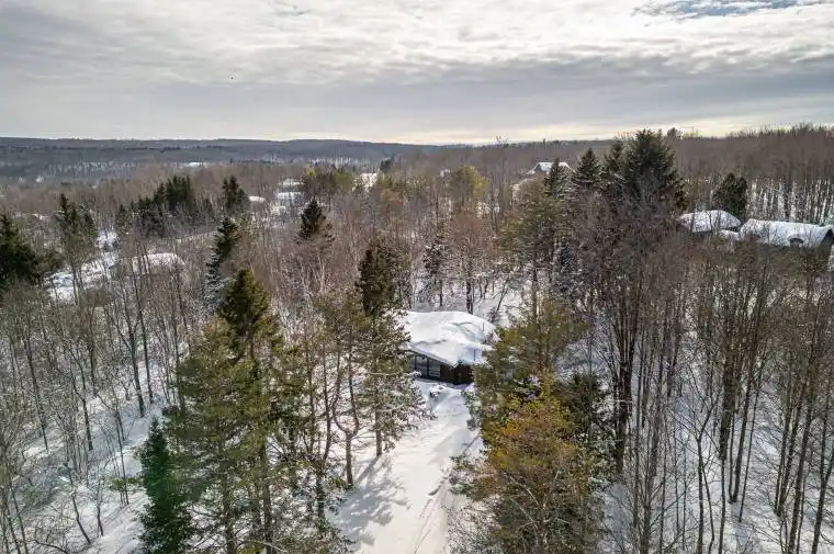 FOUR SEASON CASTLE GLEN CHALET – PEACEFUL PERFECTION. Tranquility and peace await at this 3 Bedroom idyllic all-season chalet completely surrounded by nature and access to many trails (including the Bruce Trail) and yet just a few minutes’ drive to Osler private ski club, Oslerbrook golf club, downtown Collingwood and Blue Mountain Village. Hike, cycle and snowshoe directly from your front door. Lake of the Clouds – a tranquil, serene lake is just a five-minute walk away through the trail, equally beautiful all-year round and especially delightful reflecting the Autumn leaves. Nestled toward the top of Castle Glen and set well back from the quiet dead end road you are guaranteed ultimate privacy. A welcoming mudroom and laundry flows through to the open concept Living/Dining/Kitchen with a cozy wood stove to relax by after a fun day outdoors. Three spacious and comfortable bedrooms make for an ideal family environment. During the Summer months you can unwind in your expansive garden, enjoy al fresco dining with family and friends or gather around the firepit as night falls to enjoy cozy chats and views of the stars. This sought after location offers lazy days never having to leave your home and immersing yourself in the beauty of nature from the bright and expansive windows or you could head to the slopes for action, cross country ski or snow shoe, or during the Summer months enjoy a round of golf at the many local courses including Oslerbrook which is only minutes down the road. Browse the designer shops or stroll along the waterfront in Collingwood/The Village/Thornbury and enjoy the local nightlife with an impressive array of restaurants to choose from the choices are endless in this fantastic 4 Season destination. This would make the perfect full time residence or equally your 2nd home away from home all season chalet. Water is from the reservoir. Sewage system is communal and approx. $3,700 per year. Also listed FOR SEASONAL LEASE MLS X12401967