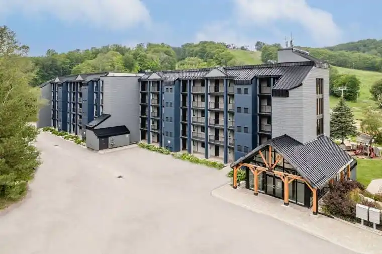 Welcome to Unit 307 at Slopeside Condos, nestled in the heart of Horseshoe Valley Resort! This haven is your gateway to all-season delight, from thrilling skiing, snowboarding, and snowshoeing in winter, to invigorating golfing, mountain biking, and hiking in the warmer months. The open-concept living space includes a modern kitchen, adorned with stainless steel appliances, a built-in microwave, and quartz countertops, stands ready to fulfill your culinary desires. After an adventure-packed day, cozy up by the fireplace, letting its warmth caress your senses. Wake up to the expansive primary bedroom, which features a walk-out to the balcony. Designed with inclusivity in mind, this unit is wheelchair accessible, showcasing extra-wide doors in the primary suite and an intelligently designed ensuite. Another generously sized bedroom, a spacious den, and a second modern bathroom ensure ample living space. Convenience meets functionality with an in-unit washer/dryer combo. Indulge in the condominium’s lavish amenities, encompassing access to the Horseshoe gym, sauna, and both indoor and outdoor pools, Horseshoe Lake and Beach. Ample parking adds to the ease of living. Just minutes away lies the town of Craighurst, offering essentials like a grocery store, gas station, pharmacy, and restaurants. Barrie and Orillia are a short 20-minute drive, while the GTA is accessible within an hour’s distance. For an extra touch of indulgence, the famed VETTA spa is a mere 4 minutes away, promising relaxation beyond compare. This is your chance to relish the distinctive luxuries of Horseshoe Resort, where each day presents a new adventure and each evening, a serene embrace of comfort.