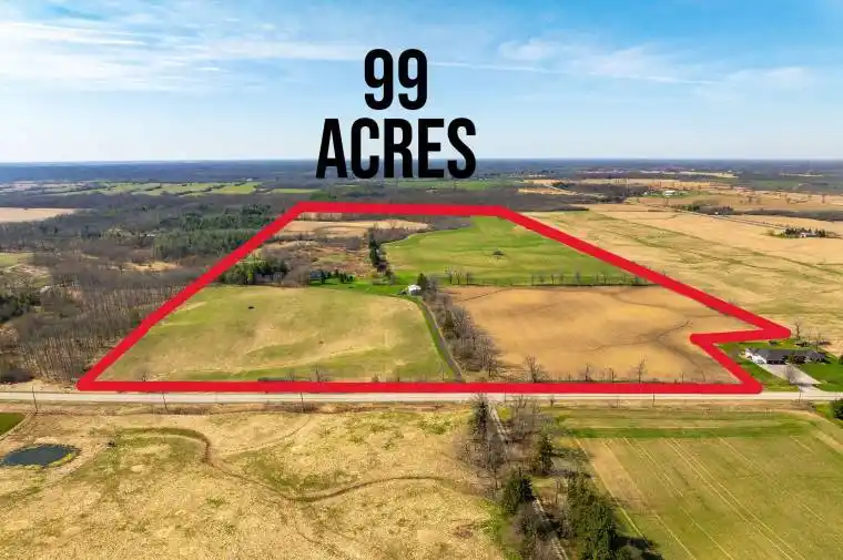 Discover the perfect blend of charm and functionality on this picturesque 99-acre hobby farm, featuring a delightful Century frame home. Approximately 75 acres of workable land are currently leased, offering both beauty and income potential. The gently rolling landscape is enhanced by a meandering creek and mature trees, including majestic blue spruce and white pine. A 30′ x 50′ implement shed provides ample space for equipment and storage. Nestled in a peaceful rural setting, this property enjoys a central location with easy access to Ancaster, Caledonia, and Brantford.