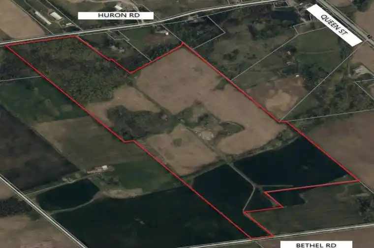 Farm in Wilmot Township with dual frontages along Huron Road and Bethel Road, this exceptional 153.64-acre offering presents a rare opportunity to acquire a highly productive and versatile parcel of farmland. With approximately 100 acres of workable farmland featuring predominantly St. Jacobs, Huron and Brant Loams (Class 1 & 2 soils), the land is well-suited for high-yield cultivation. 112 acres are zoned for Extractive Industrial with a Class A License – Permit to take up to 50,000 Tonnes annually. Northern portion of site fronting on Huron Road has bush and building lot potential (to be confirmed with conservation/municipality). 2 Ponds on property.