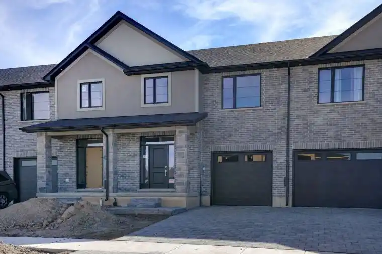 **There were TOTAL 11 Townhomes in 2 Blocks**9 Sold Only 2 Left Now**The Doulyne Townhomes at Victoria On The River, a prestigious community offering meticulously designed 3-bedroom, 2.5-bath home 1,620 square feet. These homes blend modern functionality with high-end finishes, featuring second-floor laundry, a single garage, and 9-foot ceilings on the main floor. California-style ceilings enhance the living spaces, while luxury vinyl plank flooring flows throughout, complemented by premium tiles in the bathrooms. The exterior showcases quality stone, brick, stucco, and siding as applicable, with an insulated garage door and interlock driveway for added convenience. Inside, enjoy granite or quartz countertops, under-mount sinks, and up to 25 pot lights, creating a sophisticated ambiance. The bathrooms feature acrylic tubs and/or showers with acrylic walls, and an unfinished basement offers excellent potential for future expansion of your living experience. Located in London South, this neighbourhood benefits from serene river side living with easy access to essential amenities, including schools, shopping, gyms, restaurants, and quick access to Highway 401, 15 minute drive to Western University, and 10 minute drive to Fanshawe College. Don’t miss your chance to make this exceptional community your home. SEE FLOOR PLAN IN ATTACHMENTS**