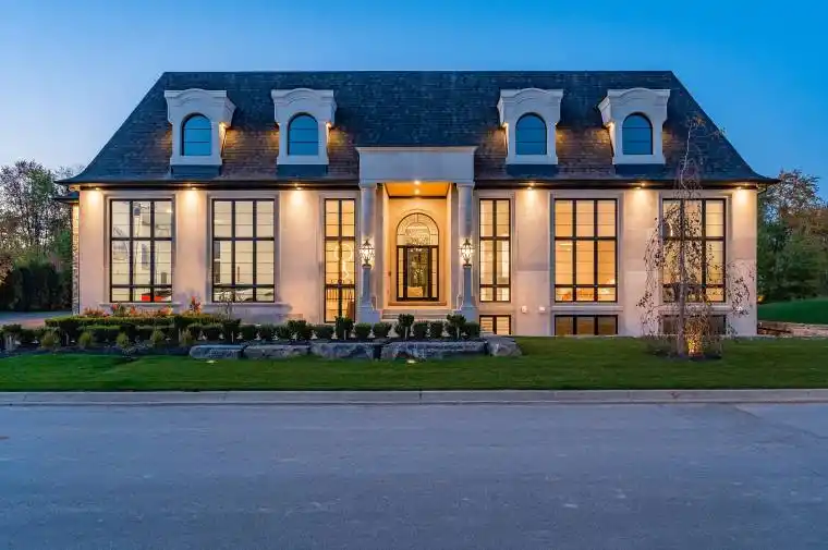 Exclusive Custom-Built Bungalow in Prestigious Heritage Lake Estates . Welcome to a truly one-of-a-kind residence, meticulously crafted for those who demand elegance, innovation, and comfort. Located in the coveted gated community of Heritage Lake Estates, this Net Zero Ready custom bungalow is a masterclass in design and sophistication. Set on a beautifully landscaped half acre lot, it offers the perfect blend of luxury, space, and modern efficiency. Spanning 7,400 sq. ft. of living space plus over 600 sq. ft. of additional storage, this home features 5 spacious bedrooms each with private ensuites, and 2 stylish powder rooms, ideal for family living and entertaining.Inside, 14-foot ceilings and floor-to-ceiling windows flood the space with light. The open-concept layout connects living, dining, and kitchen areas with access to the oversized covered patio. Elegant finishes include engineered hardwood flooring, 9-foot solid core doors, custom plaster moldings, and heated floors.The gourmet kitchen is an entertainers dream with top of the line built-in appliances, custom cabinetry, stone-clad island, and a walk-in pantry offering excellent storage.The fully finished lower level includes a recreation room, wet bar, games room, home gym, and multimedia theatre for relaxation and entertainment.Outside, the heated 3-car garage fits 6+ vehicles with lift options and includes a Tesla charging station, perfect for car enthusiasts and eco-conscious owners.Nestled within a lakeside community offering private lake access, walking trails, and a peaceful setting just 2 minutes from Highway 401 and nearby amenities, schools, and shopping.This is more than a home its a rare opportunity to own a landmark combining architectural excellence, energy-conscious living, and luxury in one of the regions most sought-after neighbourhoods.