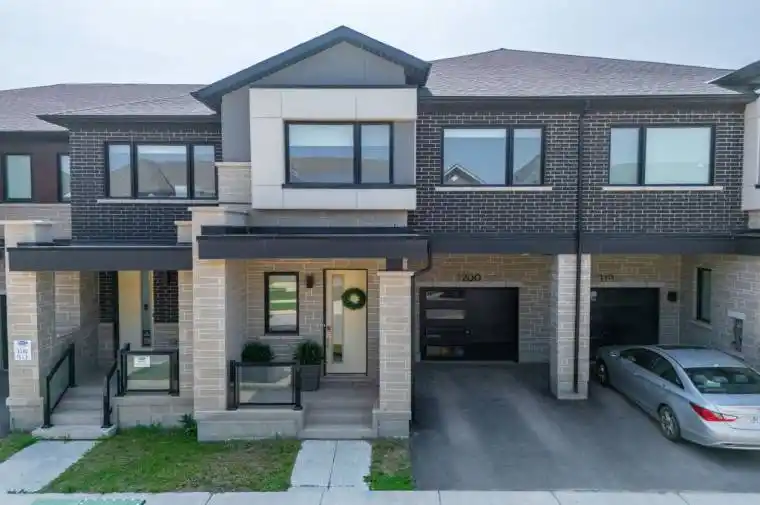 Stunning and functional for the modern day family, young professionals, or investors! Welcome to 1200 Anson Gate in sought-after Joshua Meadows! This beautiful 2-storey freehold townhome offers the perfect blend of luxury and comfort. Featuring 4 spacious bedrooms and light hardwood flooring throughout, the home boasts a bright, open interior filled with natural light. The white kitchen is designed for both relaxation and entertaining. A sizeable island overlooks the dining and family rooms. A gas fireplace adds to the ambience and warmth of the space. The kitchen features brand new stainless steel appliances and gorgeous quartz countertops with access to the backyard, which offers a built-in BBQ gas hookup-ideal for outdoor gatherings. Conveniently located off of the front foyer is access to the one car garage. Upstairs you will find four generous bedrooms loaded with natural light and high ceilings throughout. The luxurious primary suite has a massive walk in closet and large ensuite bath. The second floor also features a dedicated laundry room for added convenience. Located near top-rated schools, Oakville Trafalgar Memorial Hospital, Iroquois Ridge Community Centre, Upper Oakville Shopping Centre, coffee shops, parks, major highways, providing the utmost accessibility. This home is a showstopper and must be seen!