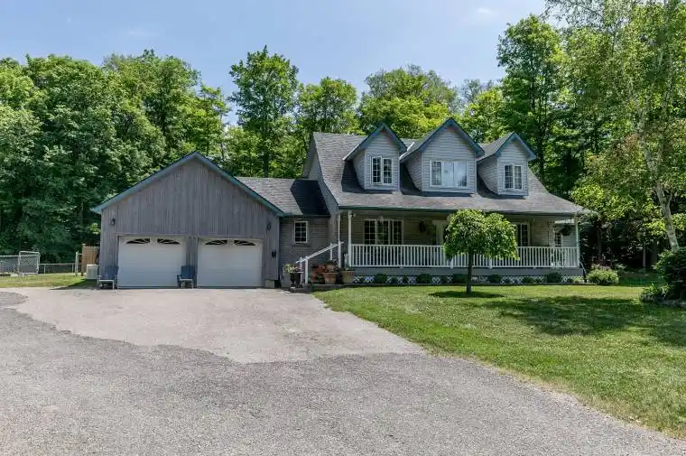 Pride of Ownership in this Immaculate 2 Storey Cape Cod Home sitting on 33 Mature Acres with Walking/Ski trails, Hardwood Bush, Natural Gas, High Speed Internet, 2 minutes to Georgian Bay Boat Ramp. This home features 3 BRS & 3 WRS. Primary BR with 4 pce Ensuite & W/I closet. Main level Office, DR or 4th BR. Oak Hardwood and Porcelain Tiles throughout. Quality Kitchen with Quartz countertops, Convention oven, Gas Cook Top. Family Rm with Gas Fireplace, Bengal Autumn Tiles, large windows boasting views of woods, gardens and wildlife. W/O to deck with screened Pavilion having hydro, ceiling fan and being very peaceful. MF laundry with access to heated garage with epoxy floor. Ponds for irrigation with pump. Low taxes with Managed Forest Incentive. Updates: 2020 Septic Tank, 2021 Bosch Fridge, 2022 well pump, 2023 Kitchen Dishwasher, 2024 Carrier Gas Furnace, 3 ton Heat Pump with A/C unit, water filtration unit and stair runner. Feel a sense of comfort with any power outage with the 18 KW Generac .