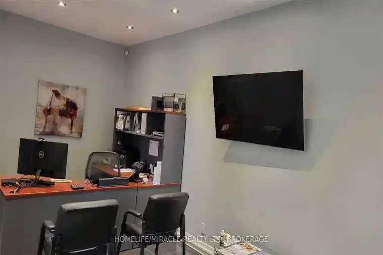 Well Maintained, Spacious, Well Lit with Pot lights Front Office Only in Desirable Location. Lots Of Possibilities, Has A Big Window If Need Exposure, All Utilities Are Included Gross Lease, Can Suit Any Office Business (Lawyer, Accountant, Insurance, Etc.) Or A Showroom. Front Office Space Only Finished With Ceramic Tile Flooring And 2Pc Bathroom Exclusive Use Of A Modern Clean Washroom.