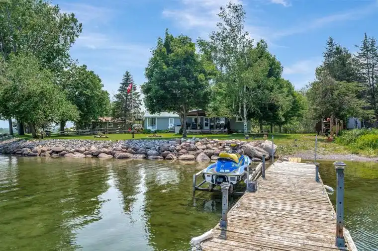 Waterfront Retreat on Pirate Cove Lane- Off Grid Living in Prince Edward County. Escape to your private slice of paradise with this charming off-grid waterfront cottage in south bay. Offering 100 feet of private & pristine shoreline, calm waters even when the wind is high. The bay provides a setting that allows you to enjoy true waterfront cottage life with your friends and family. Nestled on a well manicured private lane & only 5 other Off Grid properties, this 3 bedroom, 1 bath getaway sits on a beautifully treed lot with views that last forever. Enjoy morning coffee or evening cocktails on the expansive covered deck overlooking the water, or unwind in the rustic barrel sauna just steps from the shore. A private dock makes swimming, kayaking, and sea doo-ing effortless. The main cottage features a cozy interior with a spacious updated kitchen, lovely sitting area, eat in kitchen seating and large windows showcasing the view. A bonus camper provides extra sleeping space for all the visitors. The cottage is powered by a small solar and battery set-up, as well propane for cooking. Additional features include a large wood shed for storage, firepit for starlit gatherings, and the tranquility of a fully off grid lifestyle. This type of property is about getting back to basics and enjoying the stunning views and making memories with your loved ones.