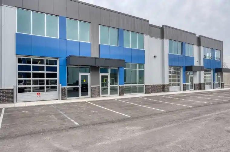 Incredible opportunity to own a fully upgraded commercial-industrial unit in the sought-after Urban Heritage Industrial Plaza on East Hamilton Mountain. This modern 1,650 sq ft ground floor space features soaring 24 ft ceilings, a large grade-level drive-in bay door for seamless vehicle access, rear double man doors, and is enhanced by a newly constructed mezzanine adding approximately 650 sq ft boosting total usable space by 40%. The mezzanine is professionally built and ready for the new owners finishing touches, offering endless possibilities for office, storage, or custom use. The unit is equipped with a state-of-the-art security system, tinted windows for privacy, and rough-ins for additional plumbing or HVAC upgrades. Zoned M3-465, this space supports a wide range of permitted uses including manufacturing, warehousing, office, showroom, contractor/trade services, tech labs, and more. Located just minutes from Red Hill, the LINC, and major highways, this is an ideal turnkey space.