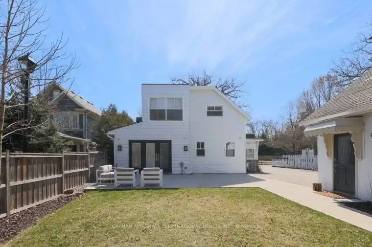 Beautiful & charming century old coach house. Tastefully renovated with new hardwood floors, new kitchen, white cabinets, white subway backsplash tiles, stone counters with bar stool seating & S/S appliances. Modern open concept layout with gas fireplace and sliding doors to large rear yard! The unit has an Ensuite laundry, 4pc renovated main floor washroom & second level with 2 bedrooms and a 3pc white washroom. Window A/C unit provided, gas/hydro extra. Must see, very unique a spacious property!