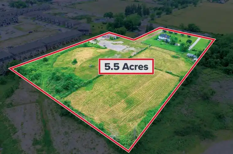 Attention Builders, Developers, Investors & Dream-Home Seekers! An incredible opportunity awaits w/ this rare 5.54-acre parcel in the heart of Binbrook, one of Ontarios fastest-growing communities. Surrounded by new residential & multi-purpose developments, this prime piece of real estate offers endless potential. 4 bdrm, 2 bath bungalow w/ walkout basement currently on the property, opportunity to rent or live in while planning your next move. Includes massive 30′ x 60′ detached workshop/garage w/ 14ft ceilings & concrete floors, horse barns, ample parking & 2 driveways. With flat topography & generous frontage, the land offers a versatile canvas for future residential or multi-use development proposals. Close proximity to all amenities makes it a convenient & strategic investment. Rare & valuable opportunity to invest in a region experiencing rapid growth. Continued development & infrastructure plans underway in the surrounding area, this parcel is poised for strong appreciation.