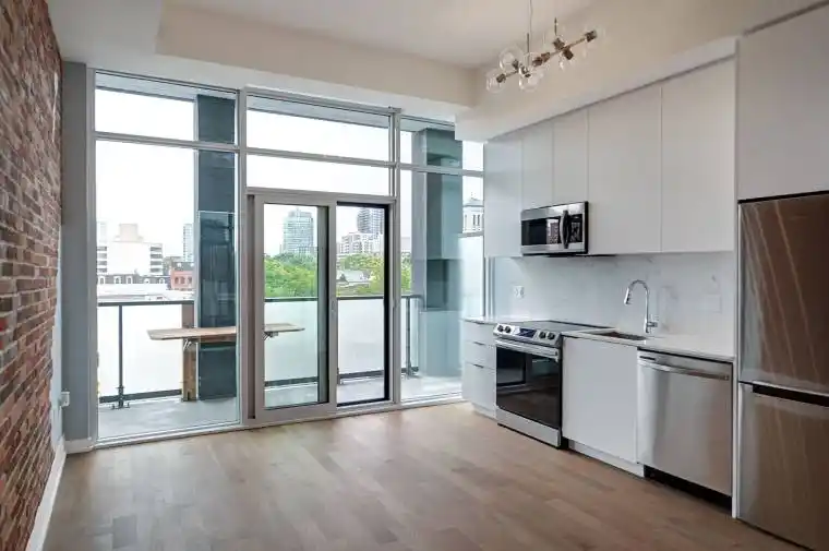 Stylish 1-Bedroom Loft style condo for Lease in Toronto’s Vibrant East End Minutes from the Historical Distillery District!Looking for a unique and modern space to call home? This beautifully updated1-bedroom suite is packed with character and charm perfect for urban professionals, creatives, or anyone craving a cool city vibe.Soaring 10’+ ceilings, an exposed brick feature wall, an open-concept layout gives this suite serious loft-style appeal. The sleek kitchen includes tall custom cabinets,quartz countertops, and a matching backsplash ideal for cooking or entertaining.The primary bedroom features a custom-built Murphy bed with a fold-down work desk, offering smart use of space and flexibility.Step outside to your own private balcony for morning coffee or a quiet evening to unwind. Just steps to the Distillery District, TTC transit, dog park, cafes, and shops.Quick access to the Gardiner Expressway and DVP, and only minutes to Leslieville And the iconic St. Lawrence Market. Don’t miss this rare opportunity to lease a one-of-a-kind suite in one of Toronto’s most dynamic Neighborhoods!