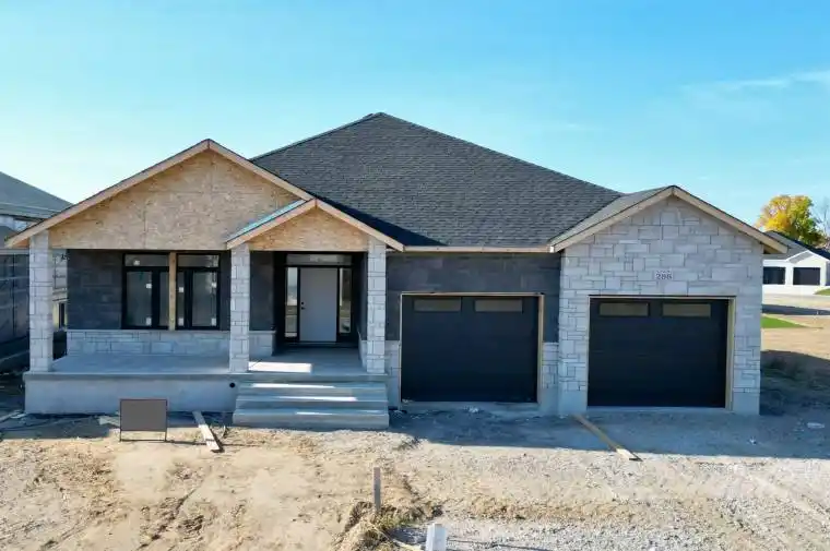 Come have a look at this split plan bungalow “The Willow” at 288 Ridge Street in Port Elgin. This split plan 1752sqft bungalow will not disappoint; with 3 + 2 bedroom, 3 full baths including a luxury ensuite with soaker tub, tiled shower and 2 sinks designed for comfort. Nestled just a short walk from the beach, this brand-new home boasts exceptional features that set it apart from the rest. Step inside to discover a stunning great room with vaulted ceilings and gas fireplace that creates an airy, open atmosphere perfect for family gatherings and entertaining. The sunset views can be captured from the partially covered back deck measuring 12 x 20. The gourmet kitchen, is outfitted with Quartz counters and features a walk-in pantry. Additional highlights include, a two-car garage with a separate staircase to the basement, hardwood staircase from the main floor to the basement, hardwood and ceramic throughout the main floor, central air, 2 automatic garage door openers, sodded yard, concrete drive and more. With all the extras and a location that’s just a leisurely stroll from the beach, this home is more than just a place to live it’s a lifestyle. HST is included in the list price provided the Buyer qualifies for the rebate and assigns it to the Builder on closing. Some colour selections maybe available for those that act early. Prices subject to change without notice