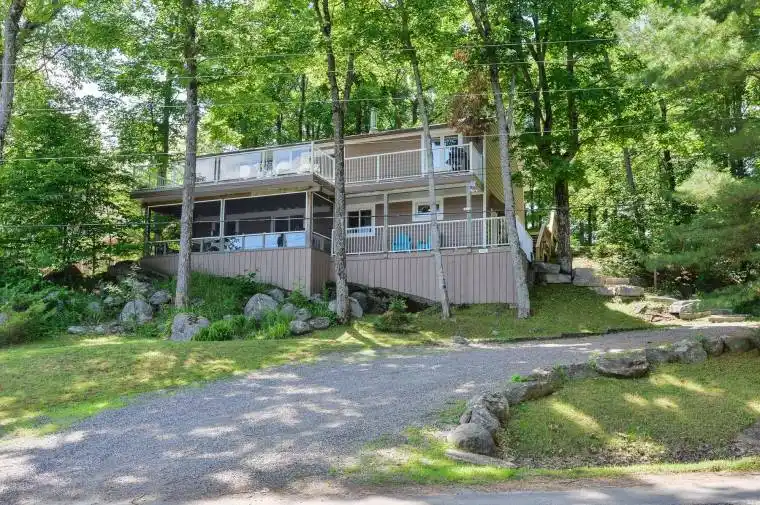 Welcome to your Muskoka getaway at Walkers Point in a quiet bay that looks out to Browning Island. This beautifully maintained year round cottage on Lake Muskoka, one of the largest and most popular of the connected Lakes, including Lake Rosseau and Joseph. This comfortable open concept 4 bedroom, 2 bath family cottage, full time residence offers everything you need for lakeside living and less than a 20 minute drive to Gravenhurst or Port Carling. Features: Cape Cod wood siding, Steel roof, Forced air furnace, Central air and Wood stove fireplace, Drilled well, lots of Decking and Docking, Private sand beach. Set on a gently sloped lot with 100 feet of sandy shoreline including a beach house and its own hydro plus deep water at multiple boat slips with a firepit on the Lake. Eastern exposure with sun all day, great for fishing off the dock, swimming, canoeing or kayaking. Two standout features are the large deck off the open concept living area with the most amazing long views with low traffic in the Bay, and the covered screened-in sun porch, perfect for sipping morning coffee or enjoying cocktails with friends. Partially fenced backyard with forest of trees for privacy. Total living space of over 2500 sq. ft. including 700 sq. ft. of play area in the crawl space for children of all ages. Low taxes are a bonus due to the indirect waterfront. There is excellent potential in the future to add additional living space over a garage or to build a boathouse. Enjoy cottage life with many great arts and cultural events, high end Golf courses. Boat into the Towns of Port Carling, Bala and Gravenhurst for ice cream, unique retail shops, bakeries, and restaurants. Could be turnkey for a quick closing to move in and enjoy the rest of the summer. All furnishings negotiable. Don’t miss this opportunity to own this cherished gem as a full time home or seasonal retreat.