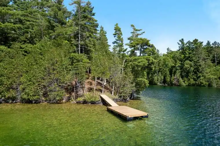 Accessible by boat, this 9.44-acre waterfront sanctuary on Palmerston Lake offers the rarest kind of seclusion. With over 1200 feet of pristine shoreline, including two quiet bays, the land feels like its own private world, wrapped in mature mixed forest and not a neighbour in site. A brand new dock invites you into the deep, clean water that makes Palmerston Lake one of the most sought-after lakes in the Ottawa Valley. A recently added outhouse and a mostly cleared building or campsite mark the beginning of your future retreat, whether you imagine a rustic cabin tucked into the trees or a peaceful tenting hideaway under the stars. The land borders thousands of acres of crown land, laced with trails that welcome ATVs and snowmobiles through all seasons. An old, closed logging road through the crown land provides potential 4×4 access to the property. Rent a boat slip at the Palmerston Lake Marina for easy access to the property ($700 for 2025). Here, privacy is not just a feature but a way of life, and the vastness of the setting offers a rare freedom.This is a place for morning swims in still waters, for evenings by the fire with nothing but the hush of forest around you. A place where the wilderness is vast, the water is close, and the possibilities are as expansive as the land itself.