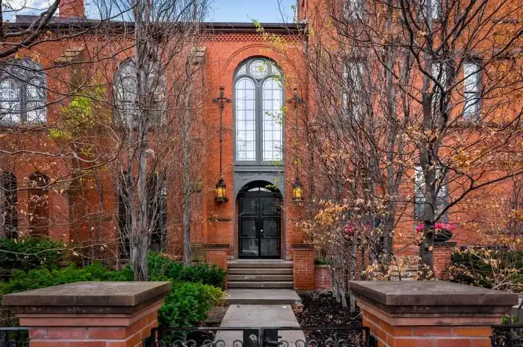 310 Palmerston Blvd is considered to be the finest historical restoration in the City. The genius of JF Brennan Design creates a grand residence of almost 9,000 sq ft of living space on all 4 levels. The brilliance of this distinctive residence is that it blends unique thinking into an architectural achievement of world class taste and esthetics. Originally built in 1889 the structure was reimagined into four luxury freehold townhouses. Throughout the residence, there is a mix of modern, antique, vintage and bespoke lighting & finishes that create a dynamic atmosphere. As you enter the grand entrance, you are overwhelmed by the soaring ceilings and the unforgettable attention to detail. A pair of industrial steel and glass doors introduces the thematic overture of the home. Every room on the main floor is awe-inspiring and on an immense scale, with ceiling heights of up to 14 feet and floors of travertine stone. The open concept family room and kitchen will be the center of your life. The second floor living space has a primary suite unlike any other – a sitting room with double height focal-point windows and a fireplace, then pocket doors to the bedroom, a marble-rich 6p ensuite, and a custom walk-in closet. The two additional bedrooms are equally special, each with an ensuite. The third floor has a captivating metal frame skylight that transmits an incredible amount of daylight into the home. The lower level has a guest suite with a kitchen and a full bathroom. Elevator, two-car garage with EV charger. There is a private expansive courtyard that is the perfect backdrop for dining and entertaining. This home is inconspicuous from the street and then opens up into a neighbourhood rich with culture and conveniences, with the best that Toronto has to offer. Walk to Little Italy, Kensington, UofT, Queen St, and enjoy all the restaurants and independent shops along College St.