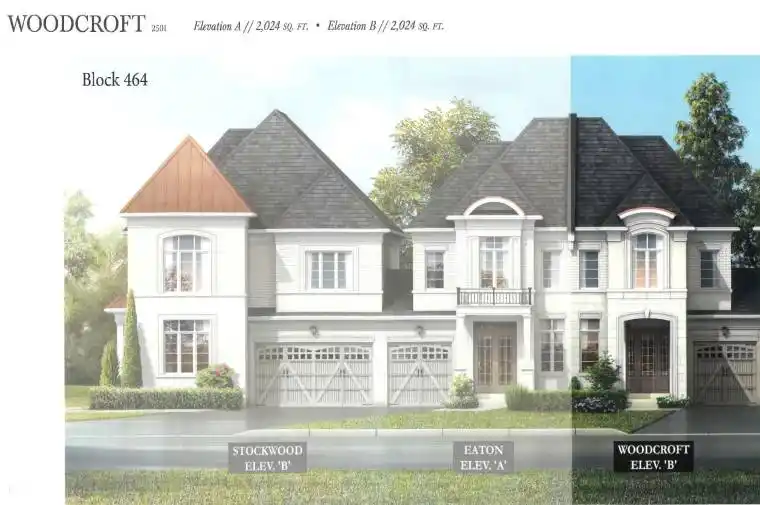 An exclusive chance to purchase a pre-construction townhome in the highly sought-after Glen Abbey Encore community in Oakville. This 2-storey townhome with a walk-out basement to your backyard offers a thoughtfully designed floor plan with 2,024 sq. ft. of living space, set on a 25′ wide lot with a 1-car garage; ideal for growing families or those seeking a modern, functional layout. The townhome will offer 3 bedrooms and 2.5 bathrooms. Step inside to a formal room leading to an open-concept breakfast room and great room with a gas fireplace. The kitchen will have either quartz or granite countertops, a central island, and a Bosch Appliance package. Upstairs, the primary suite is a true retreat, complete with a large walk-in closet and an ensuite showcasing a soaker tub and a glass shower. The upper level also offers a convenient laundry room. The basement will have a rough-in for a future bathroom, with potential for a separate suite. Premium finishes are included, such as oak hardwood floors, porcelain tile, coffered ceilings, and 9′ smooth ceilings on the main level. Purchasers may have the opportunity to customize interior selections. Occupancy is projected for Summer 2027, and the home will be covered by a 7-Year Tarion Warranty for added peace of mind. Act now to reserve this lot, a limited release in one of Oakville’s most desirable master-planned communities! (Block 8, Lot 3, Woodcroft Model – Elevation B).