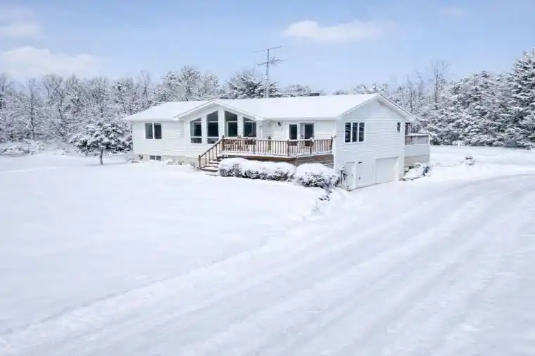Charming 2-bedroom, 2-bathroom bungalow built in 2005, set on a spacious double lot. This bright and inviting home features a living room with wall-to-wall, ceiling-high windows that fill the space with natural sunlight. The kitchen opens to a large back deck, perfect for entertaining, while the dining area offers walkout access to a front deck. The basement includes a finished rec room and potential to expand by dividing the extra-large heated, insulated garage double deep for a workshop or abundant storage. The oversized driveway provides ample parking and a 50-amp RV hookup. The property is on septic and well and city water is at the road ready for hook up. This home is just waiting for a family who loves the outdoors. Call today for a private viewing.