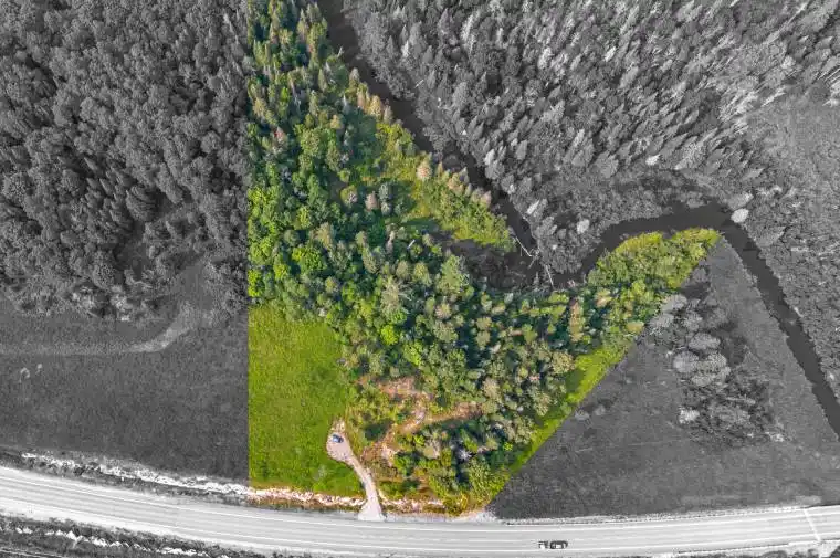 Shadow River Riverfront Estate Lot | 4.55 Acres with 700′ of Shoreline. Discover an extraordinary opportunity to craft your own Northern retreat on the tranquil shores of the Shadow River. This rare 4.55-acre estate lot offers an impressive 700 feet of private water frontage, set amidst a serene landscape of open meadow and scattered young hardwoods. Elevated well above the floodplain, the expansive 1.24-acre building envelope provides the ideal canvas for a grand main residence, extensive outdoor living spaces, and private amenities. Gently rolling and beautifully drained, the land invites elegant driveway approaches, manicured gardens, and sweeping river views. Enjoy peaceful paddles along the Shadow River or explore the nearby waters of Lake Rosseau, just minutes away. An MTO-approved driveway from Highway 141 ensures effortless year-round access, with the charming village of Rosseau only 5 minutes away, the Parry Sound Municipal Airport 20 minutes and Highway 400 just beyond. Unmatched in privacy, scale, and location, this is an opportunity perfect for those who dream of designing a riverfront estate that will be cherished for generations.