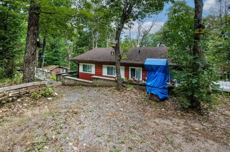 RARE 5-BEDROOM COTTAGE! Its not often you find a cottage with five bedrooms, but this one offers plenty of space for family and guests. Designed in a back-split style, the upper level features all bedrooms and a bath, connected by an open loft-style hallway that overlooks the lower level. The main level boasts an open-concept layout with a spacious kitchen offering ample cupboard and counter space, a dining area, and a welcoming living room with a fireplace. Step outside to a huge wrap-around deck and a generous patio are a perfect for outdoor entertaining. The gently sloping lot leads down to the waters edge, where you can enjoy swimming, boating, and fishing. Horseshoe Lake connects to three other lakes Crotch, Buck, and Bull each offering great fishing and boating. You can also paddle south along the Salmon River by kayak or canoe for amore tranquil adventure. A wonderful opportunity for a large family cottage where lasting memories are waiting to be made.