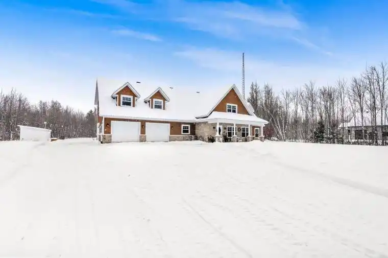 Set on 11 acres of land, this welcoming 4-bedroom, 3 full bathroom slab on grade home is the perfect retreat for a growing family. Surrounded by nature yet close to town, it offers the best of both worlds-privacy, space, and convenience. The main floor features an open-concept living and dining area filled with natural light, a spacious kitchen with plenty of cabinetry and an oversized island-perfect for family meals and gatherings. The primary bedroom includes a private 4-piece ensuite, while three additional bedrooms provide comfortable space for kids, guests, or even a home office. Enjoy year-round comfort with heated floors throughout the entire home, adding warmth and luxury to every room. The lower level offers even more room for family life, whether you need a rec room, play area, or extra storage. Outdoors, the possibilities are endless-kids can explore the pond, wide open yard, and trails through the trees, while parents relax on the full-length balcony overlooking the backyard. A double garage with a convenient side garage door makes it easy to store and access lawn equipment, bikes, and outdoor toys-perfect for busy family life. With 11 acres to call your own, this property is ideal for families who love the outdoors, space to play, and a home where memories are made.