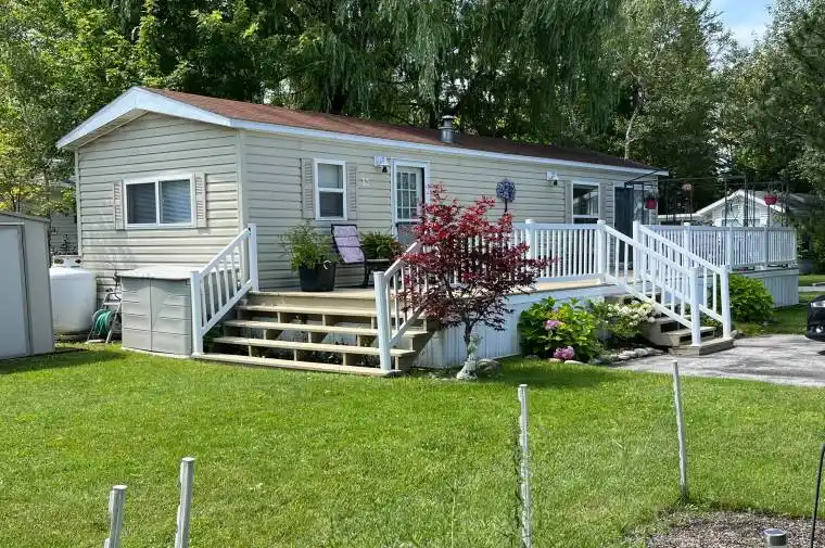 Seasonal retreat in popular Countrylife Resort. (7 months Aril 26thst-Nov 16th). Short walk to the Beach! Immaculately maintained 2004 Quailridge features a 12 x 40 deck, 2 bedrooms and is situated on a centrally located landscaped lot. Waterfront site very close to the sandy shores of Georgian Bay this cottage offers you privacy, location and low maintenance exterior with parking for two cars. Landscaped yard with plenty of private outdoor living space. This Cottage is ready for your family to start enjoying the summer! Resort features pools, splash pad, clubhouse, tennis court, pickle ball, play grounds, mini golf and short walk to the beach. Gated resort w/security. This unit has been very well maintained and is a pleasure to show! Seasonal Site fees for 2025 are $6,419 plus HST.