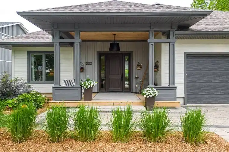 Welcome to 108 Stuart Court in the prestigious Lora Bay community, just west of Thornbury, Ontario. This exceptional, architecturally inspired 2,730 sq ft bungalow is located at the end of a quiet cul-de-sac on the sought-after east side of Lora Bay–known for its mature landscapes, Georgian Trail access, and proximity to the clubhouse. Backing onto the second tee of the Lora Bay Golf Course, this south-facing home offers peace, privacy, and expansive views. Meticulously designed with inspiration from Frank Lloyd Wright and Mid-Century Modern architects, the home blends contemporary styling with warm, natural materials. Interior features include radiant in-floor heating throughout, zoned climate control, and a thoughtful semi-open layout that provides flow and function. The Great Room boasts 12′ ceilings, a striking gas fireplace, and direct access to a 330 sq ft covered porch with its own fireplace and BBQ station. The kitchen is thoughtfully designed with custom cabinetry, a 14′ island, walnut eating bar, high-end appliances, and walk-out to the rear yard. The private Primary Suite includes a spa-like ensuite with steam shower, soaking tub, dual vanities, and a custom walk-in dressing room. A guest bedroom with ensuite access, a flexible study/third bedroom, and a beautifully appointed powder room complete the bedroom wing. A fully outfitted gear room leads to a finished, heated 630 sq ft garage with storage lift, loft, A/C, skylights, and workshop potential. Built with a focus on energy efficiency and quality, construction includes Zip sheathing, Rockwool insulation, solid core doors, and a radiant slab foundation. No detail has been overlooked–age-in-place design elements, curbless showers, wide doorways, and level transitions throughout ensure long-term comfort. Professionally landscaped, evergreens, and a tranquil water feature, this is a rare offering in a fully built-out section of Lora Bay. Move in and enjoy a true four-season lifestyle.