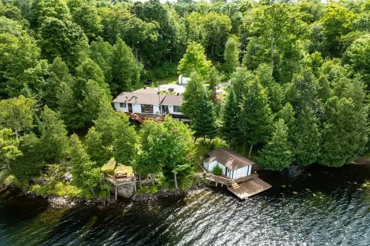 Beautiful turnkey cottage that has been well maintained and is now ready for a new family to enjoy. The setting is private and peaceful and there are just a few easy steps down to deep, clean water frontage on Crosby Lake. Down at the water is a large dock and a dry boathouse – a great place to store all your water toys and equipment. The cottage has 5 bedrooms, a full bathroom, a large living room with a wood stove and a nice sun-room where you can relax and enjoy watching nature and views over the lake. The property is serviced by a full septic system, a lake water system, and the cottage sits on a concrete block and wood frame foundation. The area under the cottage is a perfect place to store things for the winter. The property also has a garden shed, a woodshed and a steel, 1.5 car detached garage or workshop. Crosby Lake is a medium size lake with no public access keeping it in pristine condition for the owners. There is good fishing for bass and pike and the scenic surroundings are perfect for outdoor recreation. What a wonderful for a family to come together, relax and just have fun at the lake! Located is ideal – just north of Westport for access to all amenities, shopping, dining, entertainment, etc.