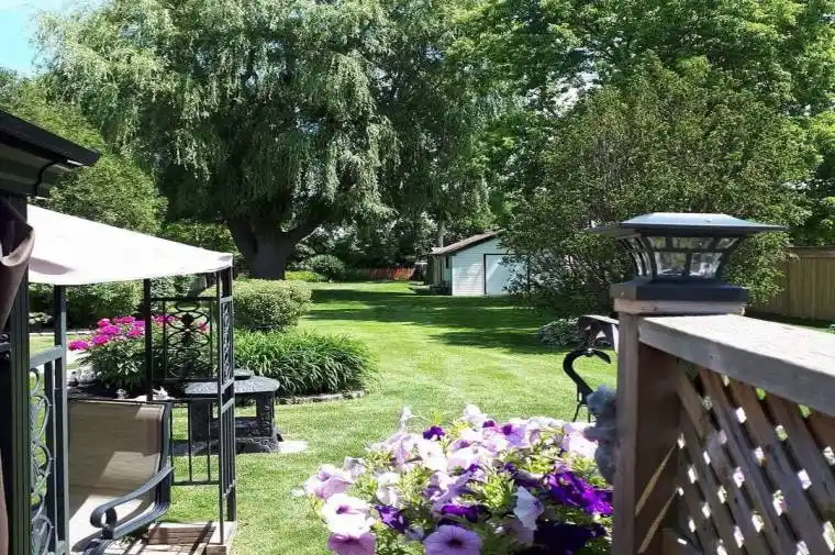 Welcome to country-style living at its finest! This charming property offers a rare opportunity to own a spacious 50 x 235 ft lot, surrounded by picturesque farmland while still being only minutes from the QEW, community centres, schools, libraries, and everyday amenities. With its cozy, cottage-like feel and endless potential, this home is the perfect canvas for families looking to renovate and design their dream retreat. The lot itself is truly the star of the show. Mature trees, lovely gardens, and a newer 6×6 fence create privacy and tranquility, while four backyard sheds and a canopy provide plenty of storage and workspace. The expansive green space is versatile and ready for you to create the backyard oasis you’ve always envisioned. Parking is plentiful with space for four vehicles plus an attached insulated garage, currently used for storage, that could be converted into additional living space. Step inside and you’re greeted by a cozy sunroom wrapped in warm wood accents, instantly evoking cottage vibes. The open-concept dining and living area offers great flow, highlighted by wood wainscoting and a large window that fills the space with natural light. A spacious eat-in kitchen with stainless steel appliances, ample cabinetry, and tile backsplash makes for a functional hub of the home. Main-floor living is possible with a bedroom and 3-piece bath featuring a walk-in tile shower with built-in bench ideal for in-laws or single-level convenience. A mudroom with laundry provides easy access to the backyard and side yard. Upstairs, you’ll find two additional well-sized bedrooms, perfect for growing families. With its unbeatable lot size, rural charm, and proximity to city conveniences, this property offers the best of both worlds. Bring your vision and transform this cozy cottage-style home into the country escape your family has been dreaming of.