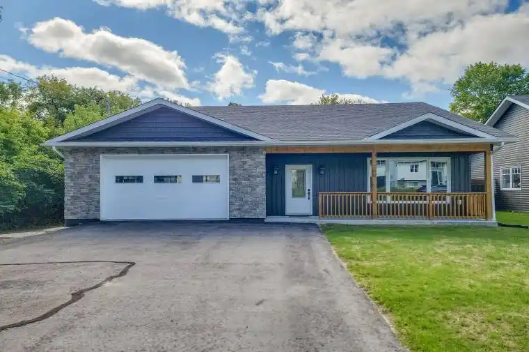 Welcome to this modern open-plan bungalow, built in 2020 with efficiency, low-maintenance, and luxury living in mind. High ceilings and an open layout fill the home with natural light, while sleek hard-surface flooring throughout (100% carpet-free) adds both style and practicality. The spacious living room, anchored by a cozy natural gas fireplace and accented with pot lights, creates the perfect gathering space. The modern kitchen features stainless steel appliances, soft-close drawers and cupboards, and a clean contemporary design. Three generous bedrooms include a primary suite with a walk-in closet and a private 3-piece ensuite, while a stylish 4-piece main bathroom ensures comfort for family and guests. A true highlight is the fully finished (very rare) 20’6 x 20’6 garage, making it functional year-round. Additional upgrades include a fully owned on-demand hot water heater (no rental bills and endless hot water), efficient natural gas in-floor heating for dust-free comfort, AC ducts built into the ceiling with upgraded insulation for more effective cooling, and an HRV system. Outside, enjoy a rear deck off the patio doors, an extra-wide paved driveway with ample parking, and the convenience of town water, sewer, garbage, and recycling services. This thoughtfully designed bungalow blends modern style, comfort, and practicality, offering the ideal one-level living solution in a truly low-maintenance package.