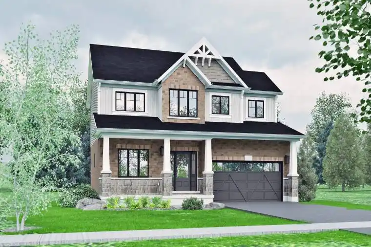 To be built by renowned Devonleigh Homes, this Newport floor plan in the sought-after Woodstream community blends timeless design with modern functionality. Set on a lot that backs onto peaceful green space, the homes exterior showcases a refined combination of stone, brick and vinyl siding in a neutral palette that maximizes curb appeal. A welcoming covered entry leads into a bright and spacious interior designed for todays lifestyle. At the front of the home, a versatile den or office provides an ideal setting for remote work, studying, or simply a quiet space to focus. The heart of the main level unfolds into an airy open-concept living, dining and kitchen area, where natural light and outdoor views create a warm, connected atmosphere. A stylish two-piece powder room and convenient inside entry from the attached double car garage enhance everyday ease. Upstairs, three generously sized bedrooms provide restful retreats for family and guests. The primary suite is a private haven featuring a walk-in closet and an elegant five-piece ensuite with a separate shower, soaking tub and double-sink vanity. The two additional bedrooms share a well-appointed four-piece guest bathroom, and the second-floor laundry room keeps chores streamlined and out of sight. The unfinished walkout basement offers exceptional potential to expand your living space, with direct access to the backyard and the tranquil green space beyond. With all municipal services in place, including natural gas, town water and sewer, high-speed internet and curbside garbage collection, this home is designed for both comfort and convenience. Set in a friendly neighbourhood with easy access to parks, schools, shopping and recreation, this soon-to-be-built residence invites you to create the lifestyle you’ve been dreaming of in one of the areas most desirable communities.