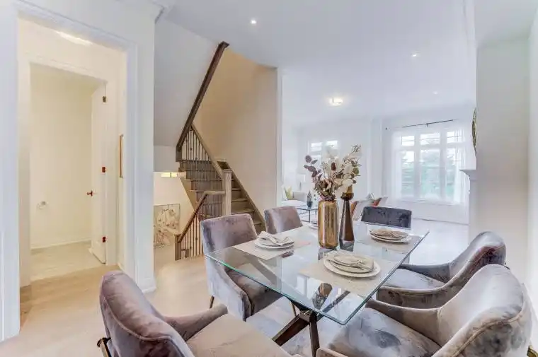 Luxury Townhouse by Renowned Builder “Kylemore’ 2108 sq. ft, 10′ ceiling on Main floor, 9′ on upper floor, Spacious Kitchen with Nice Pantry, High End Built In Sub Zero/Wolf S/S Appliances, Quartz Counters, Breakfast Bar. Gas fireplace,Open Concept Family Room with H/Wood Floors & W/O to Deck. Huge Living/Dining Room, H/Wood Floor, Modern design and layout.2 Gar Garage & Driveway Close to Amenities, Excellent School District, Public Transit, Community Centre, Public Transit.