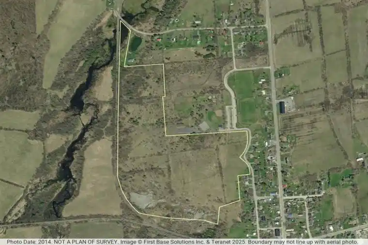 Prime Development Opportunity within the Hamlet Designation of Harrowsmith, featuring approximately 850 feet of frontage along Notre Dame Street. The site is directly adjacent to Centennial Park and recreational facilities, and backs onto the K&P Trail – part of the broader Cataraqui and Rideau Trail system – exceptional lifestyle amenities for a residential development. Just 17km to the Hwy 401 & 38 interchange and minutes from Kingston, this location offers both rural charm and urban convenience. The property lies within a defined Settlement Area under the South Frontenac Official Plan, which states: “It is the intent of the Township that these Settlement Areas will be the focus of a significant portion of new residential and non-residential development.” Subject to municipal and planning approvals, the site represents an opportunity for a residential draft plan of subdivision. The combination of proximity to Kingston, adjacent parkland, trail access, and highway connectivity-set within a community.