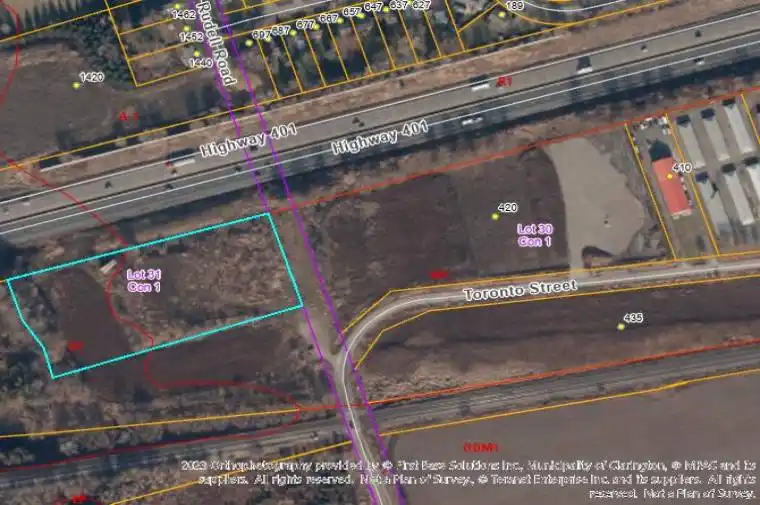 4.3-acres vacant industrial land zoned M1-Industrial & EP in the Municipality of Clarington Official Plan. Great Highway Exposure. 600-feet frontage exposure on south side of Hwy 401 – 1,000 metres west of the Newcastle Hwy 401 Interchange #440 – Mill Street. Additional neighbouring 6.8-acres M1-Industrial land owned by same Seller and currently for sale. Buyer/Buyer Agent responsible to complete own due diligence. Full Legal Description: PT LT 31 CLARKE AS IN N30781 (PARCEL THREE, SECONDLY) EXCEPT PT 2, 10R99; CLARINGTON.