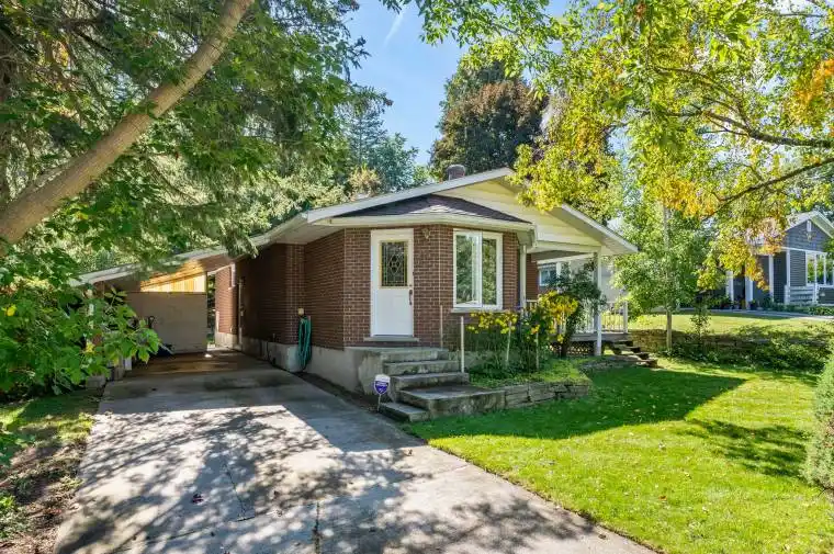 Nestled in a quiet area of Hanover, this bungalow is the perfect family or retirement home. Consisting of a good sized kitchen, bright dining area with patio doors to the front porch, living room with gas fireplace, full bath and 3 bedrooms. Downstairs is a large rec room with wood burning fireplace, workshop area, 2nd bath, and laundry room. There is new vinyl plank flooring in living room & 2 bedrooms, new electrical panel (Sept 2025) and the roof is approx 11 years old & updated eaves troughs with leaf guards. The back yard is tree lined and very private.