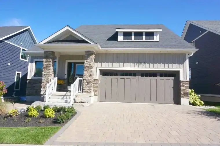 Welcome to the award-winning Cottages of Lora Bay. This Builder’s 5-bedroom and 4-bath Model Home features over 3500 sq. ft. of finished modern living space, showcasing fine interior design with distinguished exteriors and exquisitely appointed interiors: fabulously flowing open concept design from top to the bottom level, main floor primary with ensuite, walk-in closet, luxurious wall coverings, custom trim & door painting and stylish finishes. The bright Great Room boasts soaring vaulted ceilings with impressive lighting and a floor-to-ceiling stone gas fireplace. The professionally designed kitchen features a walk-in pantry, upgraded quality cabinets in two different finishes, an oversized quartz island, upgraded appliances and lighting. A trendy powder room with mosaic porcelain flooring, a stone sink and practical pocket doors. Upper level boasts two bedrooms and a cozy loft overlooking the great room, which can be used as an office. Over $200,000 spent in upgrades, including a fully finished basement, two additional spacious bedrooms, a full bathroom, plus a very trendy wine cooling room with a drink bar behind the glass wall. Two-car garage equipped with professional cabinets providing plenty of storage, insulated doors, and superior finished garage flooring providing stain-free durability. The textured surface provides added traction, ensuring the safety of you and your family. GDO and an EV car charger for your convenience. The hot tub in the garden is an oasis of peace and relaxation. Professional landscaping all around the property with lush trees and plants. A minute’s walk to Lora Bay community Beach Club for swimming, kayaking & beach volleyball. Free access to the gym at Lora Bay Country Club. Conveniently located minutes from Thornbury’s downtown shops, restaurants & cafes. Sport and hiking enthusiasts can enjoy a whole year of entertainment with a walk to The Golf Club at Lora Bay or a short drive to other golf clubs and private skiing.