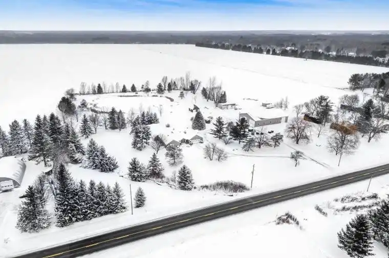 Welcome to this extraordinary estate offering over 6 acres of private countryside living with luxury finishes, extensive outdoor amenities, and exceptional spaces for both entertaining and hobbyists alike. Step inside to find an elegant open-concept main floor featuring a chef-inspired kitchen with rich wood cabinetry, high-end appliances, granite countertops, and a striking stone backsplash. The expansive island with seating flows seamlessly into the bright dining area, highlighted by a crystal chandelier and large windows overlooking the scenic grounds. The inviting living room boasts custom built-ins and a cozy natural gas fireplace-perfect for family gatherings. The home offers 4 bedrooms filled with natural light, stylish bathrooms with modern vanities, and a lower-level retreat complete with heated floors for year-round comfort. Outdoors, enjoy resort-style living with an all-season in-ground pool under a retractable enclosure, multiple lounge areas, and a peaceful private pond. For the hobbyist or entrepreneur, this property includes a 2,800 sq. ft. heated garage plus an additional 1,600 sq. ft. garage-ideal for car enthusiasts, a workshop, or storing recreational toys. Located just minutes from town amenities yet surrounded by nature, this estate combines luxury, functionality, and tranquility. This is more than a home-its a lifestyle. Serious inquiries only and must be pre-approved before scheduling a visit.