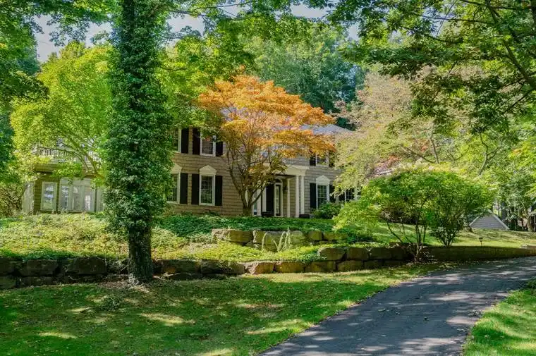 Camelot Hill Estate. Set on 1.2 acres of manicured grounds framed by mature trees, this custom-built Georgian Colonial offers over 3,700 square feet of timeless design and refined living space. Perched on a hillside overlooking winding Lakeshore Road West, this home has a dominant presence and is just outside of the lakeside town of Port Colborne.The columned entrance leads to a grand foyer that introduces a sweeping oak staircase and flows into formal living and dining rooms, each anchored by classic detailing. A main-floor office, sun-filled Florida room with French doors to the terrace, and a warm family room provide both formal and casual spaces. The kitchen, updated with new cabinets and flooring in 2022, blends tradition with modern function granite counters, high-end appliances, and an adjoining breakfast area overlooking the grounds.The upper level has 4-5 spacious bedrooms and 2.5 updated baths. Restored hardwood floors, two fireplaces, and an abundance of natural light reinforce the homes enduring character. The lower level is unfinished providing extra space for future finishing and expanding the living space of this grand home.Extensive updates include: new roof (2021), new windows and doors (2022), garage doors, lighting, and a new water system. A dedicated internet tower ensures reliable high-speed connectivity.The landscaped property is equally impressive with terraces, gardens, and a heated garden shed all creating spaces for gathering, relaxing or creating, while nearby lake access at Cedar Crest Road connects you to sandy Camelot Beach and the shoreline of Lake Erie.10187 Lakeshore Road is an unmatched, exceptional estate in a serene wooded setting and offers quick possession.