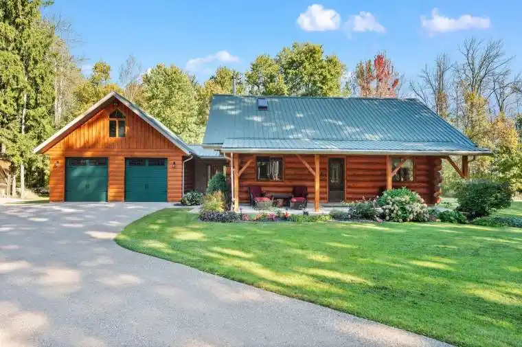 Discover this beautiful log cabin home set on 6 private wooded acres, just 10 minutes from Walkerton and 30 minutes to Bruce Power. Perfectly tucked away, the property offers a cottage-like feel with trails throughout the bush for walking or cross-country skiing. The home features open-concept living with hardwood floors, high-end finishes, and plenty of natural charm. There’s one bedroom on the main floor, a loft currently used as a second bedroom, and an additional bedroom in the finished basement. The basement also includes a spacious rec room and a 2-piece bath, offering great space for family and guests. Outdoors, enjoy a paved driveway, fully landscaped yard, large patio, hot tub, and an impressive 24′ x 52′ workshop, with 24′ x 40′ heated space. A large 2-car garage with a storage loft above provides additional potential for a future rec room, man/lady cave, or hobby space. With high-speed fibre internet now available, this property blends the peace of country living with modern convenience. A true private retreat. Ideal as a year-round residence or a peaceful getaway.