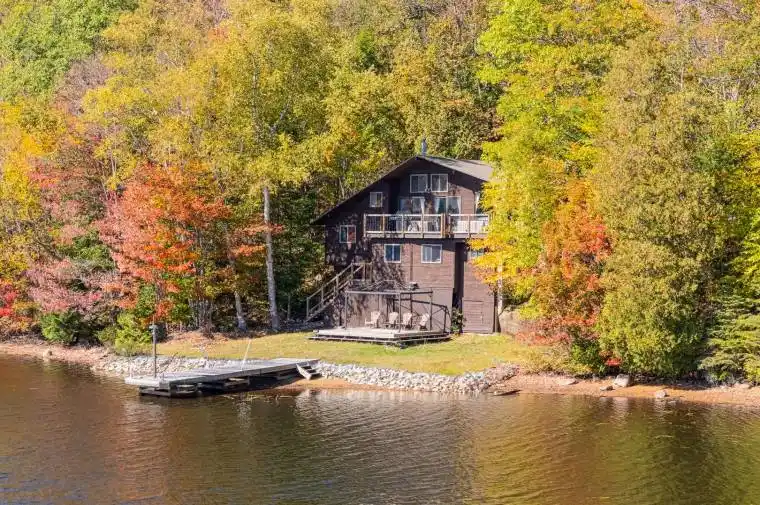 Embrace tranquility and beauty of the largest lake in Haliburton, especially in the northwest corner (i.e. Fletcher Bay) of Kawagama Lake, where few boats travel. This inviting property with a sunny south exposure and 200 feet of shoreline is located beside 100 feet of CROWN LAND, which also wraps around to the rearof the subject property for added PRIVACY. The multi-level B.C. cedar-sided cottage has been lovingly cared for and maintained. The cosy main living area is lofted with a 14′ ceiling, bright and open. There’s nice warmth and ambiance created by a fireplace in the living area. Nature and its captivating presence pour in through many large windows. The living area has a fireplace and walkouts to various sun decks. There are 2 bathrooms and 3 lower level bedrooms. The lake has excellent fishing opportunities for bass & trout. The crown land has a network of trails nearby, ideal for hiking, snowshoeing, ATVing, snowmobiling and so much more for those who like to be active in the wild outdoors of Algonquin Highlands. The charming town of Dorset is only 15 minutes away, which is 2.5 hrs from Toronto. The road that Ivy Lane branches off is kept open 4-seasons. This is a special cottage and property with many appealing features in a very desirable location!