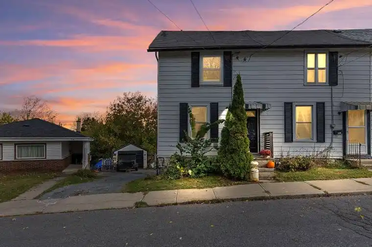 Welcome to 343 Sydenham Street, a charming semi-detached two-storey home located in one of Kingston’s most sought-after downtown neighbourhoods. Built in 1890, this 2-bedroom, 2-bath residence offers a perfect blend of character and comfort. The open-concept main floor features a bright and functional kitchen that flows seamlessly into the living area, ideal for both everyday living and entertaining. Upstairs are two well-proportioned bedrooms and a full bath. Modern conveniences include forced-air natural gas heating, central air conditioning, and new shingles scheduled for installation in the coming weeks. The property also features a detached garage providing off-street parking or additional storage space. Situated just steps from McBurney Park and within walking distance of Queens University, Kingston General Hospital, and the downtown core, this home offers exceptional access to Kingston’s finest amenities. A wonderful opportunity to own a piece of history in a vibrant and walkable community.