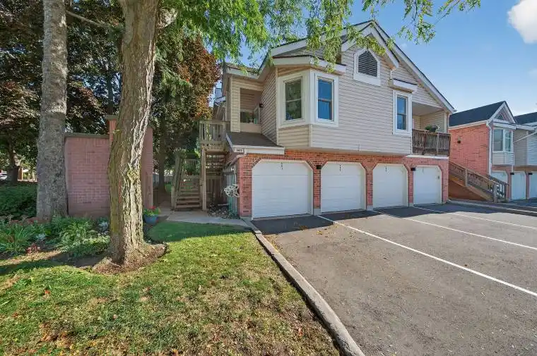 Welcome to this beautifully maintained second-storey, one-level living, town home featuring 2 spacious bedrooms plus 2 full bathrooms. Primary bedroom with walk-in closet and 4 piece ensuite (tub/shower combo). Second bedroom w/3 piece ensuite (walk-in shower). Numerous windows throughout flood this open concept living area in a cheerful, natural, warm atmosphere. Spacious living room/dining room. Lovely kitchen offers a breakfast bar, pantry, as well as generous extra storage! South facing private balcony (gardener’s delight) is conveniently accessible from dining room plus primary bedroom – extending your living space! Also, enjoy your own personal in suite laundry/utility room! Exclusive-use garage, with an additional parking space and private storage room. Near all amenities! Walk to: waterfront, parks, hospital, Mapleview mall, public transit, schools etc. Easy access to the QEW (Toronto & Niagara bound), 403 and 407. Proudly owned home, meticulously maintained by the same PET FREE & SMOKE FREE owner for over 27 years. This is a special home ready for you! Possession date flexible.