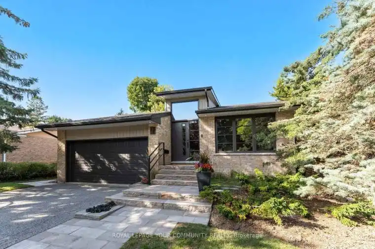 Tucked away on a quiet tree-lined street, this bright and spacious modern backsplit blends luxury and comfort in every detail. Truly unique and unassuming, rebuilt top to bottom, it’s filled with natural light and features soaring ceilings, a striking floating staircase, and a chef’s kitchen with an 11-ft island, marble backsplash, and top-tier appliances. The open layout flows effortlessly to a cozy family room with wood-burning fireplace and walkout to a year-round, private, pool sized backyard – your own hidden oasis. Two bedrooms up, including a luxe primary suite with ensuite & W/I closet, plus main-floor office/3rd bedroom. Finished lower level with rec room, Murphy bed, 2 PC bath & spacious laundry. Direct access from the 2-car garage plus plenty of storage spaces throughout.