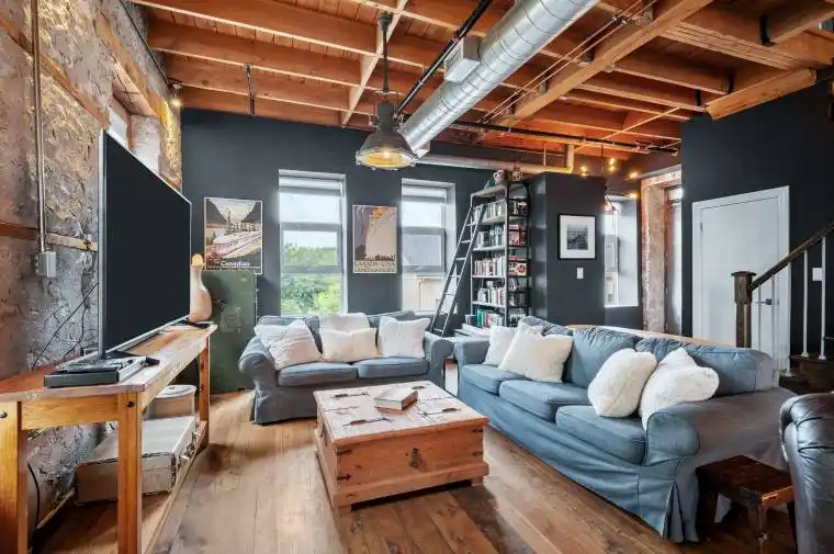 This Stunning One of a Kind Corner Penthouse Loft is one of the larger Lofts in the Waterloo area and is located at the edge of the Grand River & offers Soaring 2 Story Ceilings with Oversized Windows That Flood The Home With Natural Sunlight. Original Wood Beams ,Gorgeous Stone Walls Give A New York City Vibe To this fabulous space, wood floors on main level with in floor heating, upgraded Kitchen offers Quartz Countertops, ss appliances, tile backsplash under vallance lighting & Seating For 4 At The Breakfast Bar, dining room offers custom cabinets with pantry quartz countertop & b/I wine fridge, cozy gas fireplace in Living room, Upstairs You Find A Large 2-Room Primary Suite With A Sitting Area, vaulted ceiling & custom Closet, 3 piece ensuite bath with quartz counters & large glass shower, both upper level bathrooms have heated towel racks, Spacious 2nd Bedroom, Den Area That Works Great As A Home Office. Explore downtown’s delights from artisanal coffee shops to chic boutiques, restaurants shopping & cultural experiences at Gaslight District. Live music events are just steps away. Surrounded by scenic walking trails breathtaking views of the Grand River, this home invites you to enjoy luxury living at its finest & more!