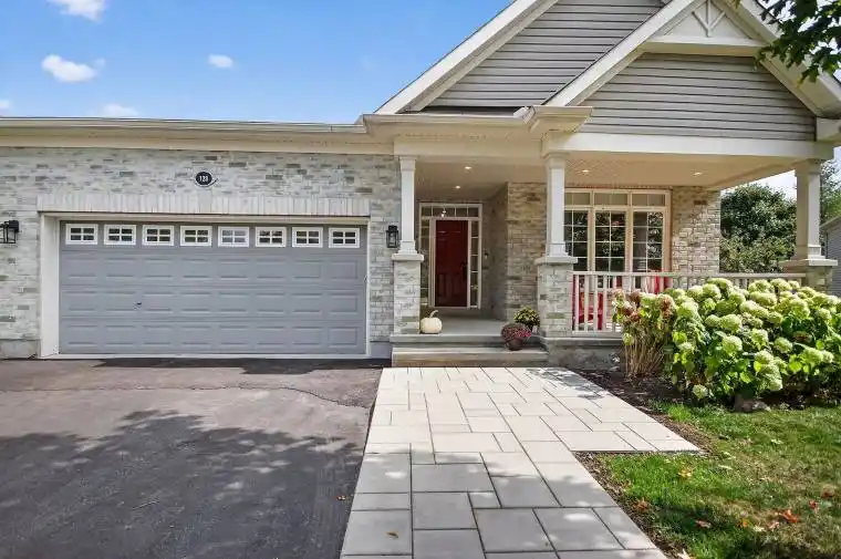 A UNICORN in Stonebridge. This property features a large pie shape lot, sits proudly on a mature & quiet street, backs onto trees not rear neighbours, a fenced, landscaped yard with an inground pool. The updated, cared for bungalow is the sought after Mahogany model ( MPAC 2034 sq ft ) built by Monarch & includes a finished lower level. The spacious open floor plan features high, vaulted or cathedral ceilings through out the main floor. A clever floor plan that offers Bed 3 to be used as an office while separating Bed 2 from the main living areas. A generous formal dining area for family celebrations/entertaining & an amazing updated kitchen featuring a 4′ x 9’2″ breakfast island, Quartz counters & back splash, updated Black Stainless Steel appliances contrasting beautifully to the white custom millwork. Enjoy casual meals at the island bar or eating area with patio door providing access to the rear yard decks & inground pool. The open family room space is centred around a tile faced gas fireplace, large windows & features a cathedral ceiling. The Pbed has a walk in closet, access to the pool deck via its own patio door & a beautifully updated ensuite bath. An oversized ceramic/glass shower, custom millwork, dual sink vanity & sleek lighting all recently completed in this ensuite. The lower level will not disappoint with its generous sized games area, a conforming 4th bedroom, full bath & a True Theatre Room. The seller’s workshop/storage area is in the furnace room & includes repurposed millwork storage from the updated kitchen, a work bench & utility tub. Be sure to check out the many updates/upgrades done over the past couple years. Book your showing soon & be ready to start packing. Sellers can be flexible to accommodate the new owners occupancy needs.