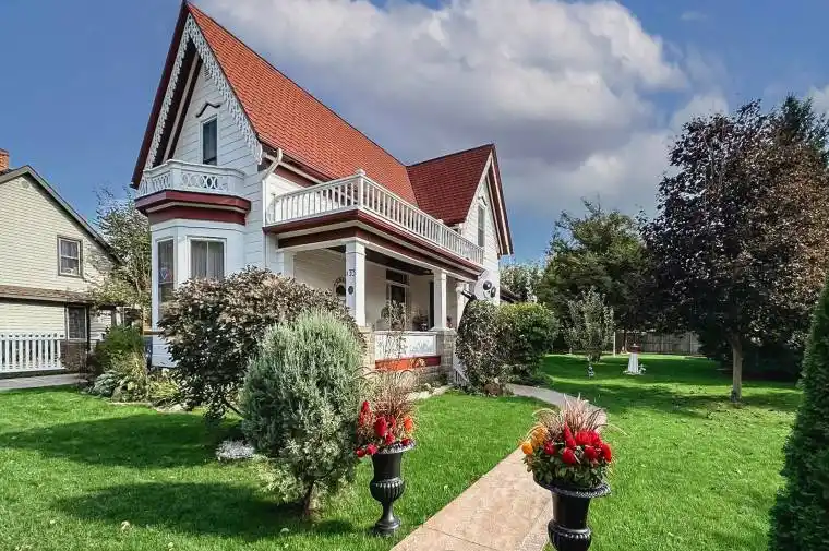 A landmark residence deeply rooted in the history of “The Prettiest Town in Canada,” 133 St. George’s Crescent offers an unparalleled lifestyle. Constructed in 1863, this distinguished Gothic Revival home retains its architectural integrity, showcasing detailed bargeboard and cornices. Now beautifully modernized for comfort, it is a truly preserved artifact. The location is phenomenal: situated on an expansive lot in Goderich’s premier neighbourhood, and is moments-less than a five-minute walk-from the stunning Lake Huron waterfront, famed for its sunsets and easy access to Goderich’s historic downtown square. The spectacular outdoor setting, where the meticulous landscaping creates a private sanctuary, complements recent essential upgrades, including, heating/cooling, a fresh exterior paint job and a brand-new brushed swirl coloured concrete driveway and front entry path. Inside, this residence beautifully blends original character with modern utility. The main level is anchored by a large foyer featuring the original winding staircase, and the interior finishes stay in keeping with the historic nature of the home while providing modern touches and conveniences. The parlour, with its beautiful gas fireplace, and the central living/dining rooms flow toward the back where the kitchen (featuring updated counters), laundry, and charming screened/glassed in porch are located. Upstairs offers three bedrooms, including the primary suite, and a four-piece main bathroom with a clawfoot tub. Practicality continues outside with a versatile detached building, which could be a dedicated workshop, exercise studio,or easily converted back to a garage. This unique home is a treasured chapter in Goderich’s story, ready for its next fortunate owner. Call your agent today to explore this timeless property.
