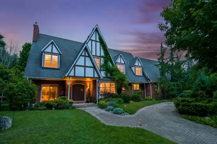 The Best of Both Worlds Serene Country Living Just Minutes from the City. This immaculate Tudor-style estate sits on a fully fenced 1.46-acre pie-shaped lot backing onto protected evergreens offering complete privacy, picturesque forest views, and over 6,200 sq ft of beautifully finished living space (3,936 sq ft above grade + 2,200 sq ft lower level) * Tucked away on a quiet cul-de-sac along prestigious Forfardale Road, and surrounded by multi-million dollar estates, this architectural masterpiece showcases timeless curb appeal, an elegant facade, and mature landscaping *The interlock circular driveway and expansive flower beds create an unforgettable first impression *Inside, gleaming hardwood floors throughout *Spacious formal living room with fireplace, separate dining room, and a spectacular great room with walk-out access and a custom wet bar make this home an entertainers dream *2 staircases total, one is a Custom spiral private staircase, the layout leads to a truly luxurious primary suite upstairs complete with vaulted and beamed ceilings and a cozy sitting lounge retreat *the finished basement making it ideal for an in-law suite, home office, gym, or teenagers private space *Located in a prestigious estate enclave walk to scenic Musselman’s Lake & Ballantrae, Stouffville amenities, minutes drive to Hwy 404 & 48, Old Elm Go Station, 60 minutes to Toronto!