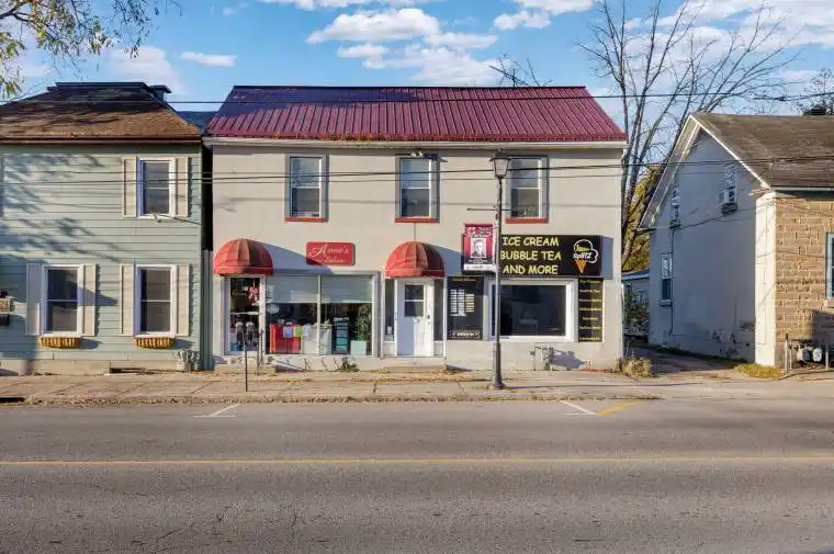 MIXED USE BUILDING IN HIGH TRAFFIC LOCATION ON WILSON STREET IN PERTH. 3 COMMERCIAL UNITS & ONE 2 BDRM APT, 200 AMP SERVICE, NEWER PEX & ABS & COPPER PLUMBING, STEEL ROOF, SPRAY FOAM INSULATED BASEMENT, FORCED AIR NATURAL GAS FURNACE, DEEP 210 FOOT LOT, COMMERCIAL TENANTS ARE A HAIR SALON and a ICE CREAM PARLOUR. VERY REASONABLE PROPERTY TAXES AT $4,270 FOR YEAR 2024, OVER 40% OF THE POPULATION OF THE TOWN OF PERTH ARE RETIRED and MORE and MORE RETIREES ARE MOVING TO PERTH. THESE RETIREES MAKE EXCELLENT TENANTS. THIS IS AN EXCELLENT RENTAL MARKET, 25% OF THE PERTH WORKFORCE WORK IN OTTAWA. PERTH HAS (1)BEAUTIFUL STEWART PARK W/MULTITUDE OF YEARLY FESTIVALS (2)THE ‘LINKS O TAY’ GOLF COURSE WHICH IS THE OLDEST GOLF COURSE IN CANADA (3) THE TAY RIVER WHICH FLOWS IN TO THE ‘WORLD HERITAGE SITE RIDEAU CANAL’. POST WAR 1812 PERTH WAS THE LARGEST BRITISH MILITARY STATION WITHTHE MOST SOLDIERS AND WAR EQUIPMENT. THE HIGH STANDING BRITISH MILITARY OFFICIALS RETIRED IN THE BANKING CENTRE OF PERTH.