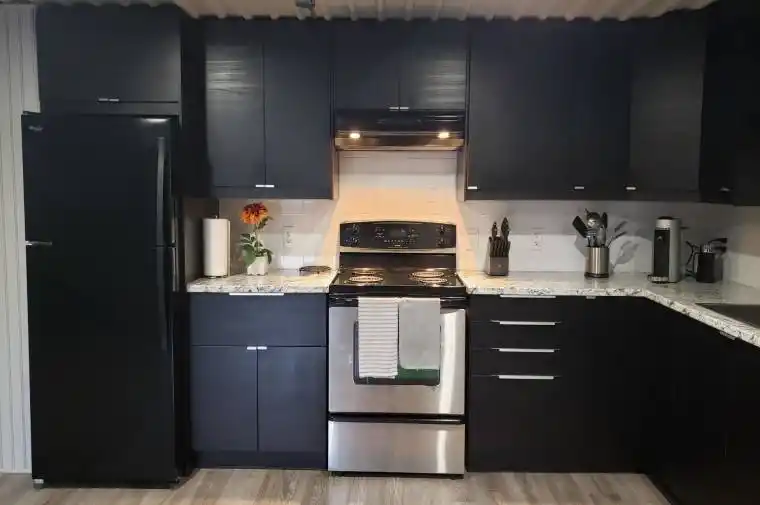 1 bedroom, 2nd floor apartment perfect for single professional. Country setting close to Highways, Transit, Hiking trails. Trendy, loft-like, open concept, full kitchen, large living area, separate bedroom, 4pc bath, private entrance, small storage space, coin laundry on-site. Heat, hydro, A/C, parking, snow removal & grass cutting is included. Like new appliances & living spaces. Rental Application. References. Employment Letter. Credit Check. First & Last deposit. Must be non-smoker, not ideal for pets.