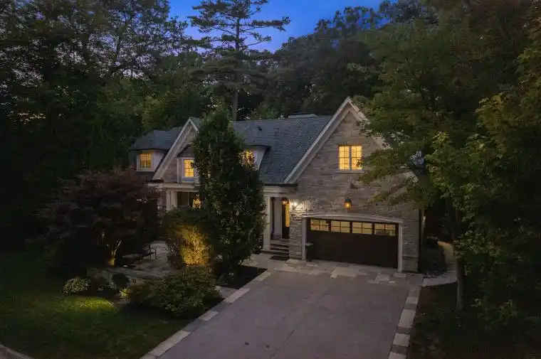 Welcome to 2025 Heartwood Court – a truly exceptional custom-built estate home, perfectly positioned near the end of a quiet cul-de-sac on a serene 123×180 ft lot in the prestigious Gordon Woods community. Surrounded by towering trees and lush greenbelt, this residence offers over 7,000 sqft of thoughtfully designed living space. Crafted with the finest materials and impeccable craftsmanship, it is built for both everyday comfort and unforgettable entertaining. The grand living room features a stone fireplace, floor-to-ceiling windows, French doors, and a seamless walkout to the expansive wraparound deck. The custom kitchen is a showpiece, with striking onyx counters and backsplash, a large centre island, Wolf stove, built-in appliances, and a breakfast area that also opens to the deck – perfect for indoor-outdoor entertaining. Upstairs, the primary suite spans nearly 1,000 sqft, complete with coffered ceilings, his-and-hers walk-in closets, a cozy gas fireplace, and a spa-inspired 5-piece ensuite with a soaker tub, walk-in shower, double vanity, and built-in dresser. Three additional bedrooms, each spacious and light-filled with walk-in closets, complete the upper level. The fully finished basement is designed for full family enjoyment, offering a stunning wine cellar, theatre room, rec room, home gym, guest suite, full wet bar, and a walkout to the patio. Outside, a true backyard oasis awaits with an in-ground pool, hot tub, outdoor kitchen with built-in BBQ, professional landscaping, and ambient lighting that transforms the space by night. Ideally located near the QEW, Trillium Hospital, Mississauga Golf & Country Club, Port Credit Village, GO transit, University of Toronto Mississauga, top-rated schools, shopping, fine dining, and just a short drive to downtown Toronto. Convenience, timeless design, and resort-style amenities come together in this extraordinary estate to offer an unmatched living experience.
